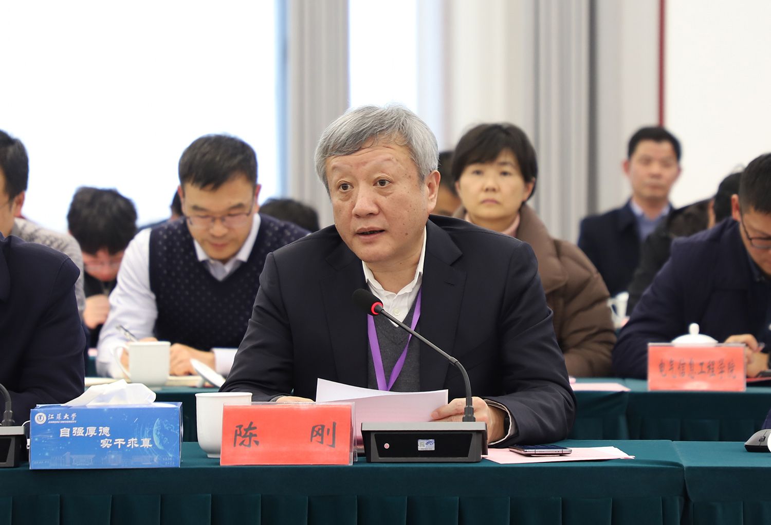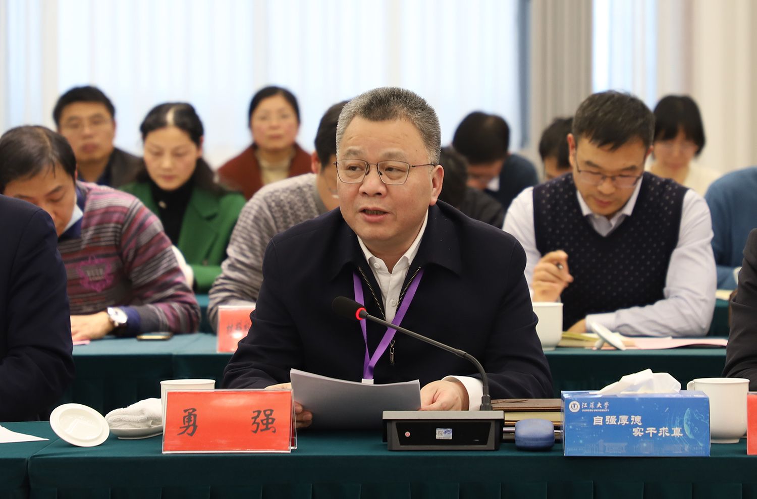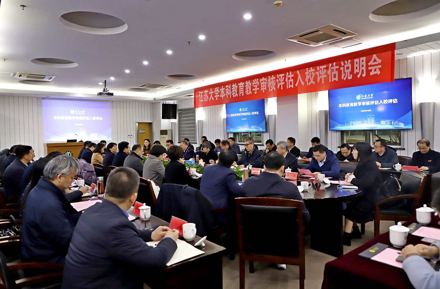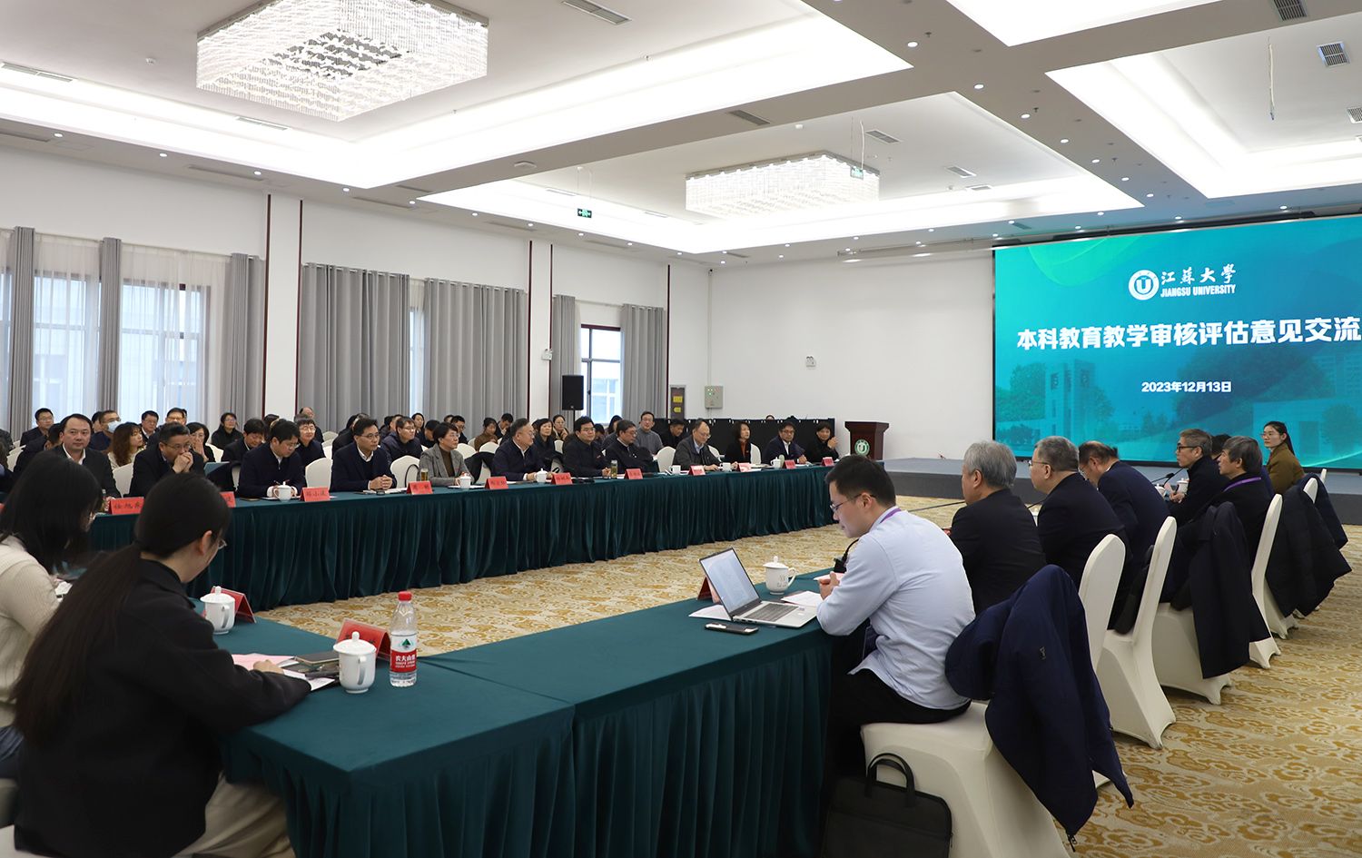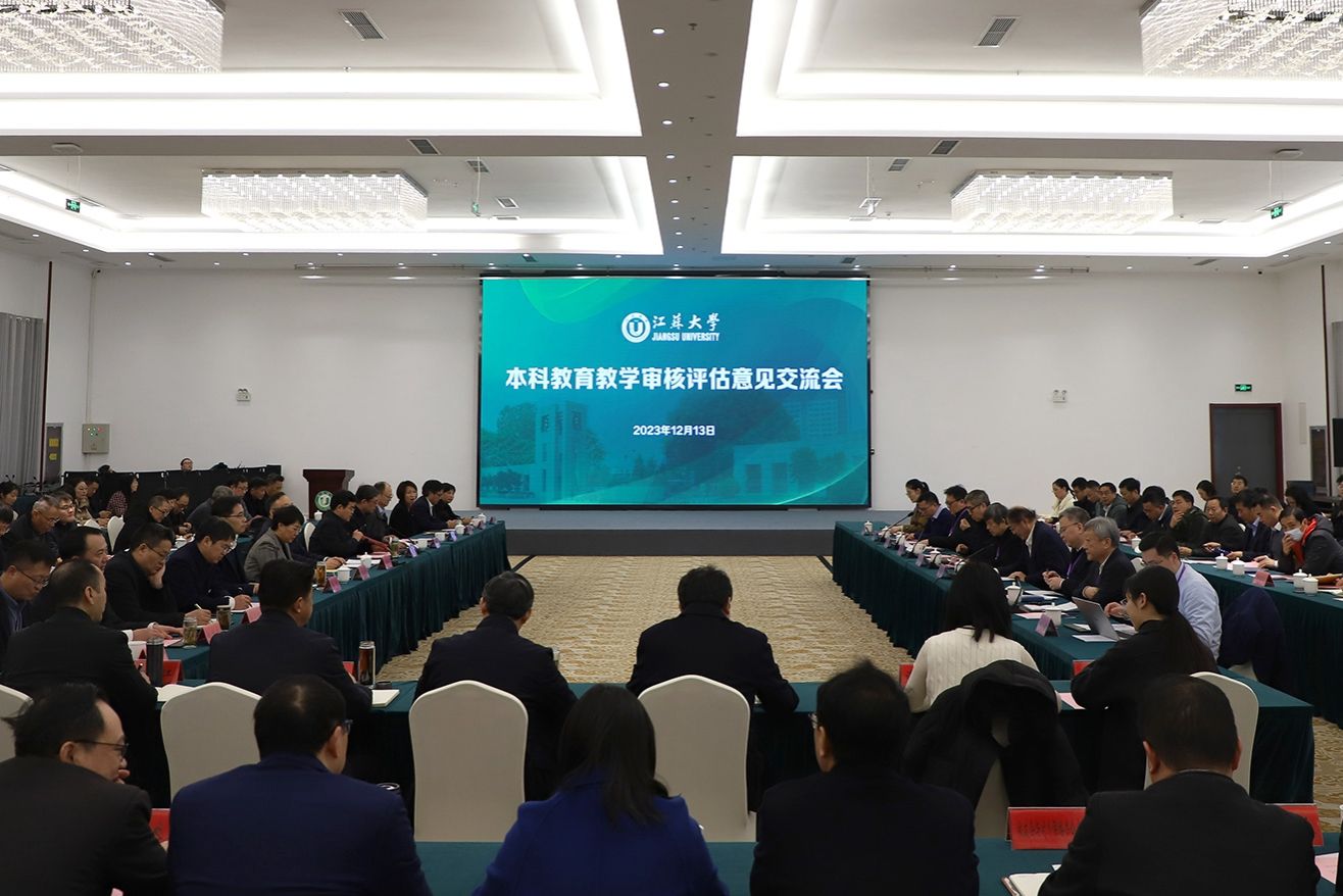 12月13日下午,江苏大学本科教育教学审核评估专家意见交流会在青教公寓多功能厅举行。专家组组长、贵州大学校长宋宝安,专家组副组长、陕西师范大学原党委书记程光旭和专家组成员,省教育厅副厅长杨树兵,省教育厅高教处、省教育评估院负责人,我校全体校领导、党委常委,主要职能部门负责人,各教学机构党政主要负责人、分管教学领导,校本科教学督导,教师代表,学生代表等出席会议。